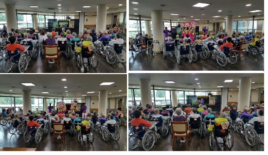 우리센터는 수급자중 참여 희망자를 대상으로 지역사회와 연계하여, 편안하고 행복한 노후 삶을 지원하고자, 지역초청행사(미리별 공연팀)를 진행하였습니다.