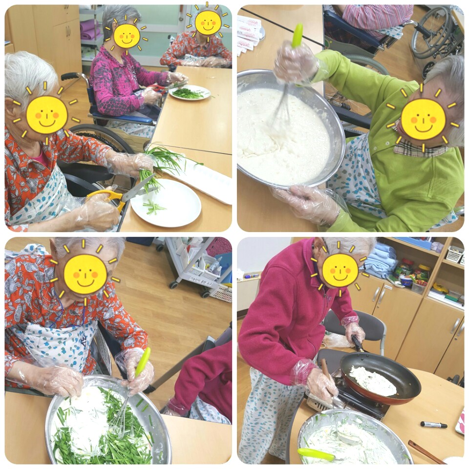 인지훈련, 인지 강화 그룹을 대상으로 다듬고 씻고 자르고 부치는 것 까지