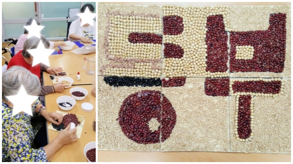 인지 강화 그룹을 대상으로는 곡물조각그림 만들기도 병행하여 진행하여 작품을 만들어 보는 시간을 가지니 만족감 더 높은 모습을 보였습니다.