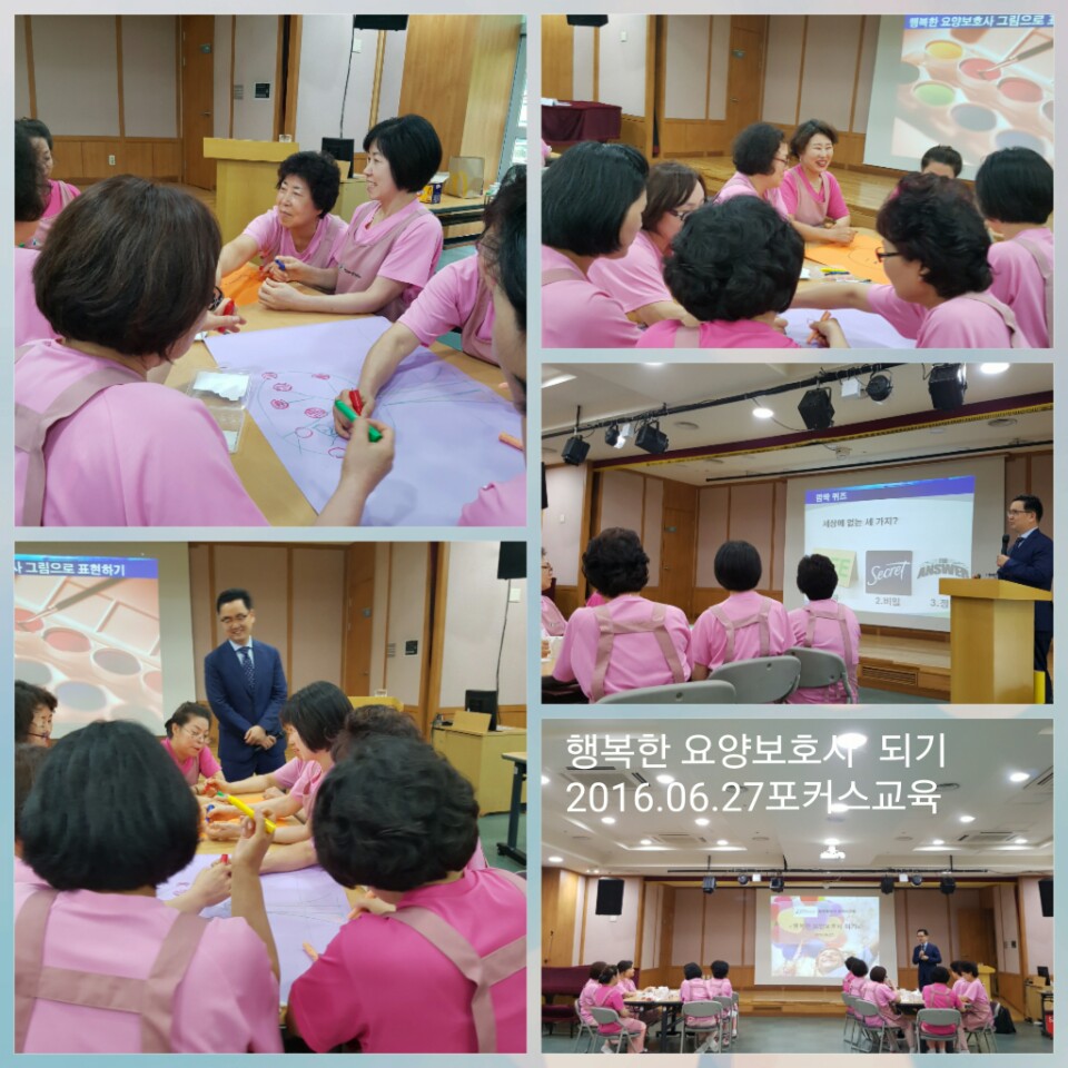 [요양] 2기 요양보호사 포커스 교육 페이지 정보 작성자 최고관리자 작성일2016-06-30 09:39 조회12,405회 댓글0건 관련링크 이전글 다음글 목록 본문 요양보호사 포커스 교육 2기 3주차 교육 <행복한 요양보호사 되기>어르신과 동료간의 갈등을 최소화하고 화해자로서의 사례관리자가 되기 위해 오늘도 교육에 열심히 임하시는 요양보호사 선생님들을 응원합니다. 댓글목록 등록된 댓글이 없습니다. 이전글 다음글 목록