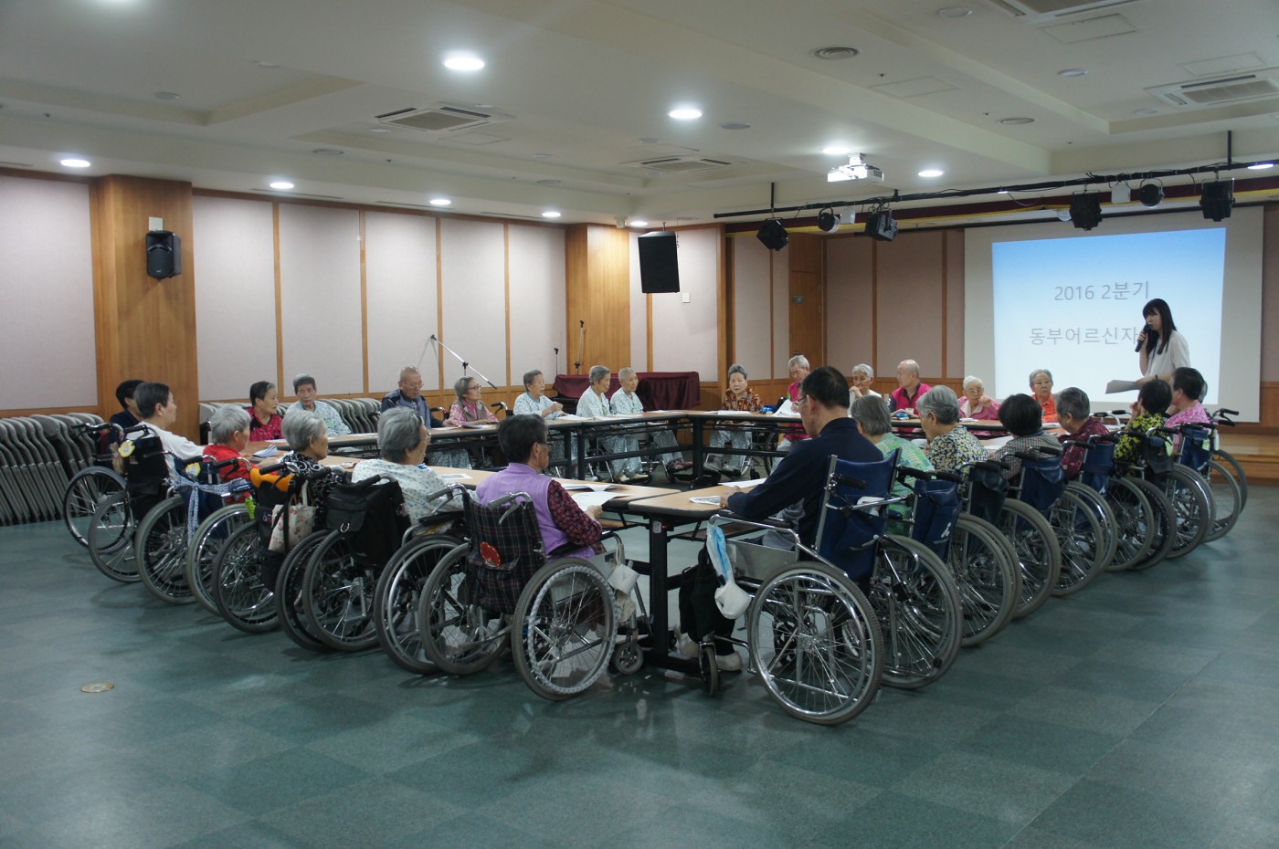 [복지]2016년 2분기 입소어르신 동부자치회 진행 페이지 정보 작성자 최고관리자 작성일2016-07-07 18:18 조회12,249회 댓글0건 관련링크 이전글 다음글 목록 본문 본 센터에서는 층별 대표어르신 28명을 모시고 “동부자치회”를 진행하였습니다. 어르신들께서 귀중한 의견을 내주셨으며 추후 나온 의견을 수렴하여 더 나은 동부로 발전할 수 있도록 노력하겠습니다^^ 댓글목록 등록된 댓글이 없습니다. 이전글 다음글 목록