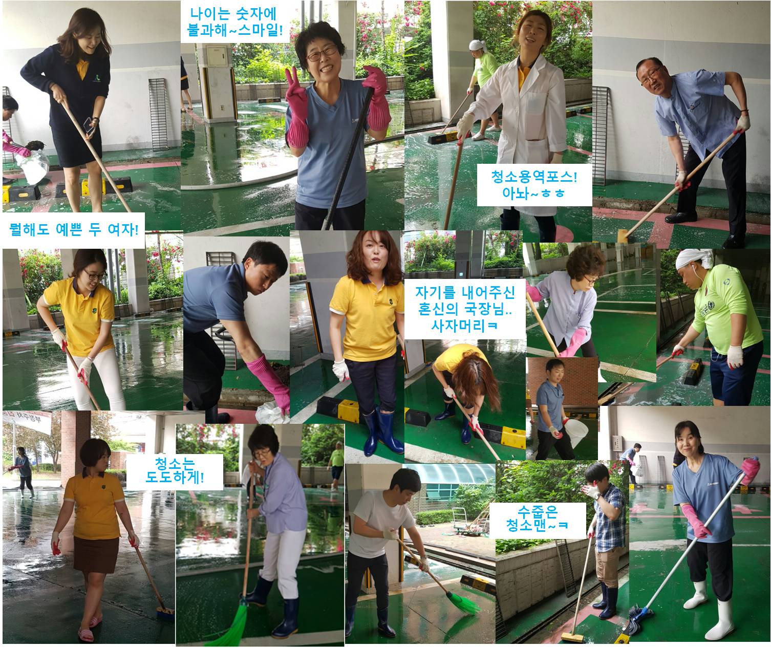 주차장을 깨끗하고 맑게 청소하였답니다.