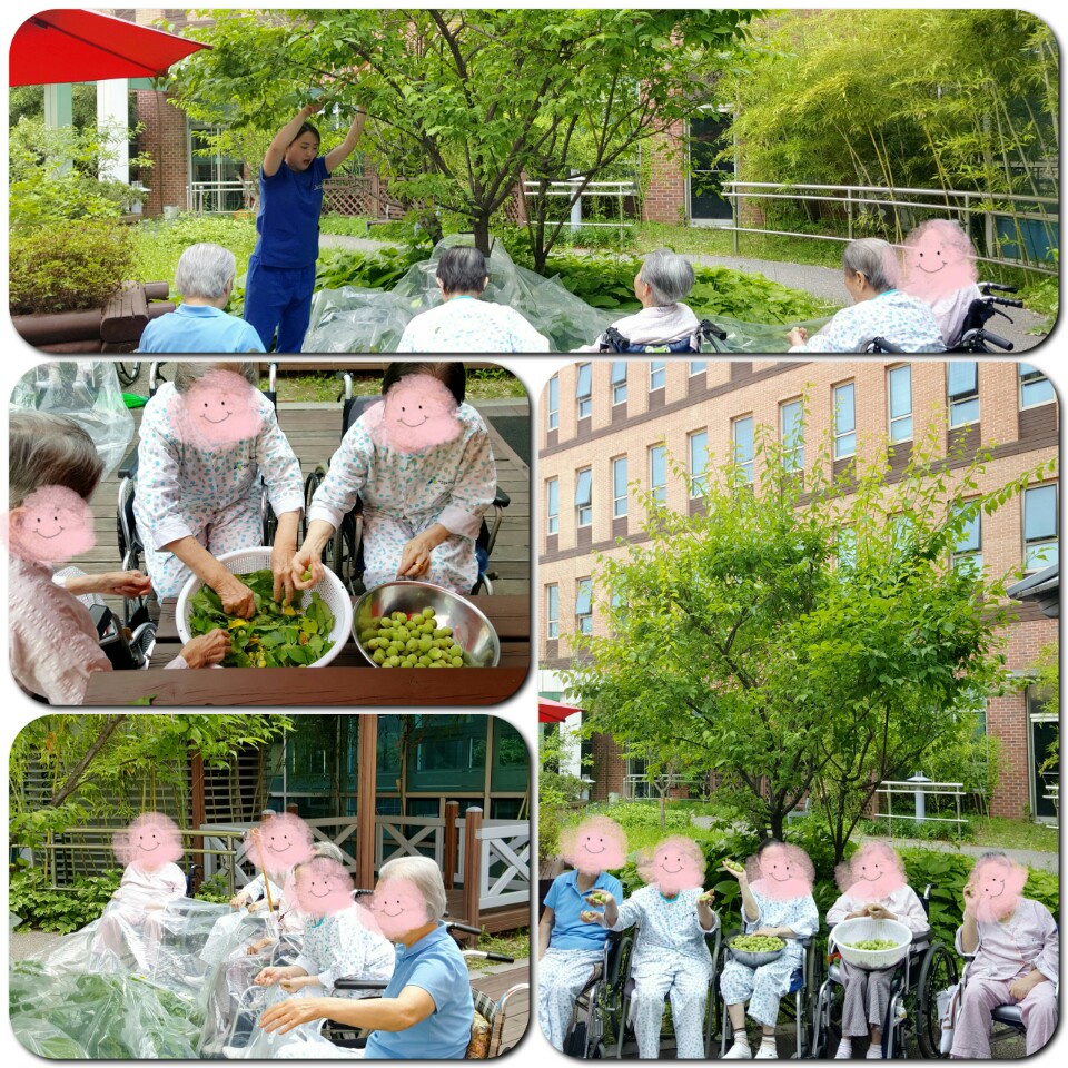 1층 치유정원에 있는 매화나무의 매실을 다 같이 따면서 옛이야기로 나누고 서로 매실청 만드는 노하우들을 공유하며 오랜만에 활기차고 즐거운 시간이 되었습니다.