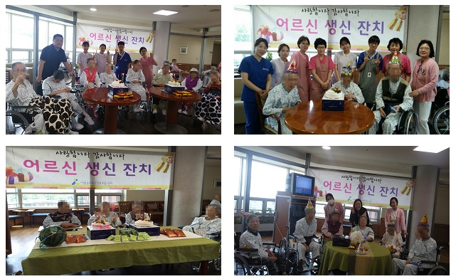 [복지] 2016년 5월 어르신 생신잔치 페이지 정보 작성자 최고관리자 작성일2016-05-19 10:52 조회11,995회 댓글0건 관련링크 이전글 다음글 목록 본문 2016년 5월에 생신을 맞이하신 어르신들을 대상으로 전층에서 생신잔치가 진행되었습니다.생신 맞이하신 어르신들 진심으로 축하드립니다.항상 건강하시고 행복하세요. 다시 한번 진심으로 축하드립니다. 댓글목록 등록된 댓글이 없습니다. 이전글 다음글 목록