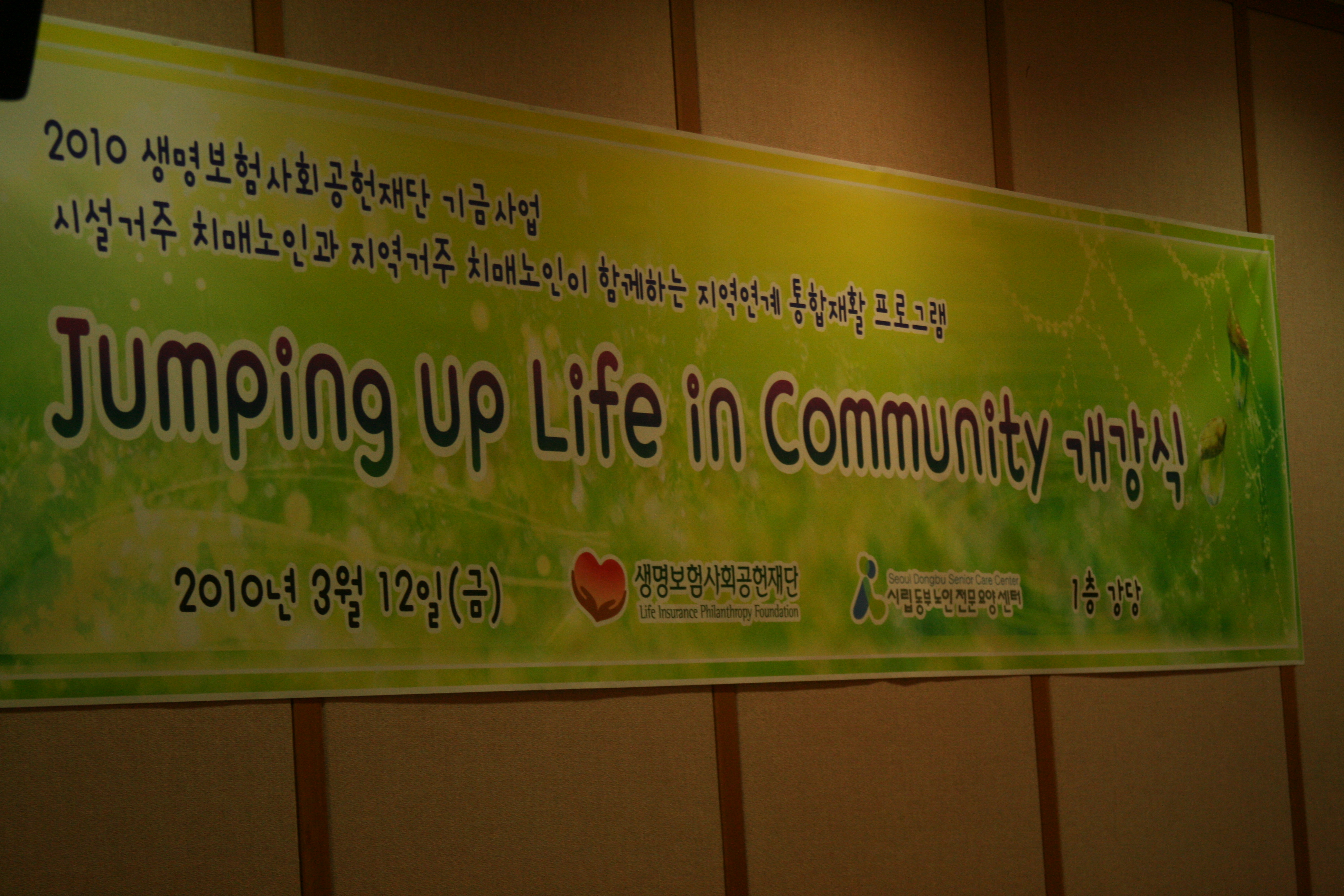 3월 12일(금) 오후 1시 30분, 시립동부노인전문요양센터는 생명보험사회공헌재단과 함께 경증 치매, 중풍 어르신을 위한 전인격적 통화재활프로그램 ‘Jumping up Life in Community’의 첫 모임, 개강식이 진행됩니다.