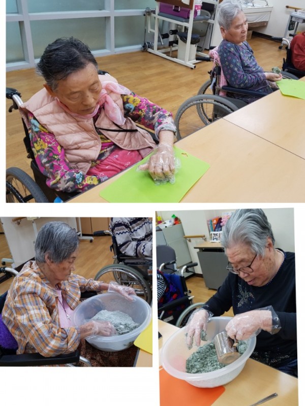 [재활] 4월 2주 기능인지 치매예방프로그램 - 쑥개떡만들기