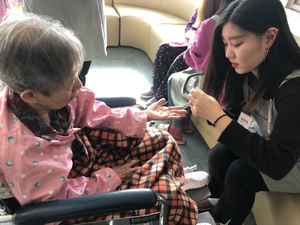 향기나는 핸드크림으로 어르신께 손맛사지도 제공해드리고~ 어르신께서 원하시는 색상을 매니큐어로 칠해드립니다^^